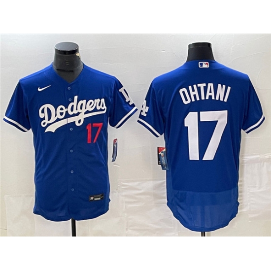 >Men's Los Angeles Dodgers #17 Shohei Ohtani Blue Flex Base Stitched Baseball Jersey