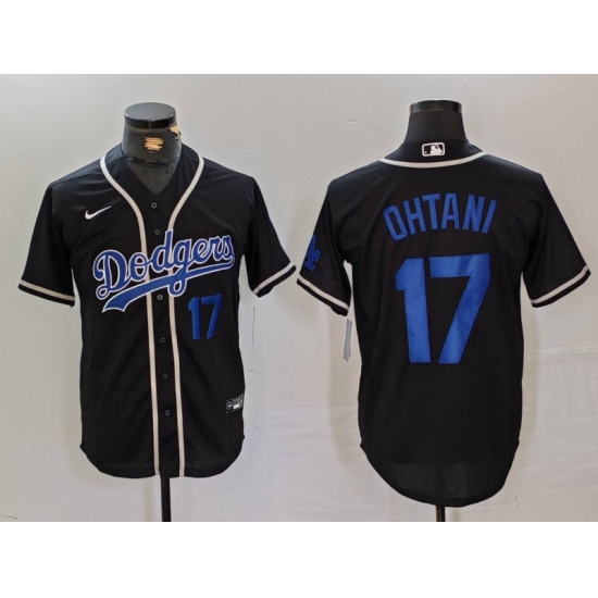 Men's Los Angeles Dodgers #17 大谷翔平 Number Black Cool Base With Stitched Baseball Jerseys
