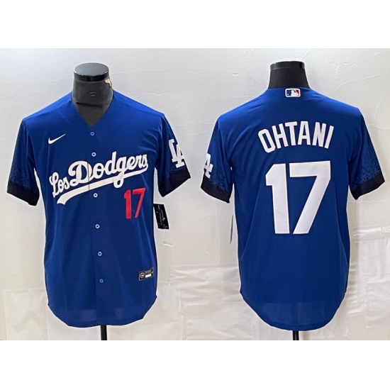 Men's Los Angeles Dodgers #17 Shohei Ohtani Number Blue 2021 City Connect Cool Base Stitched Jersey