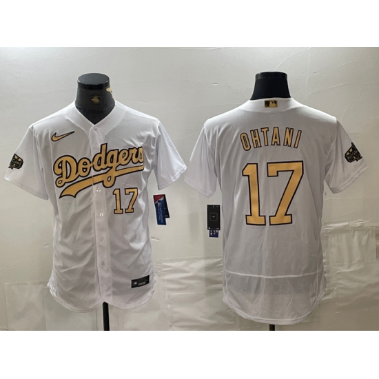 >Men's Los Angeles Dodgers #17 Shohei Ohtani Number White 2022 All Star Stitched Flex Base Nike Jerseys