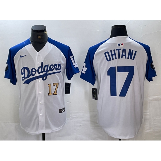 Men's Los Angeles Dodgers #17 Shohei Ohtani Number White Blue Fashion Stitched Cool Base Limited Jersey