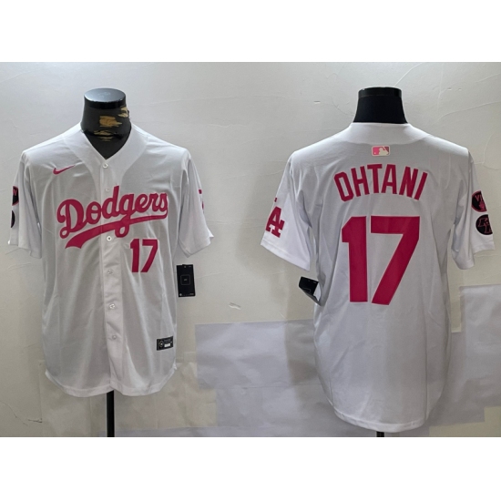 Men's Los Angeles Dodgers #17 Shohei Ohtani Number White Pink Limited Cool Base Stitched Jerseys