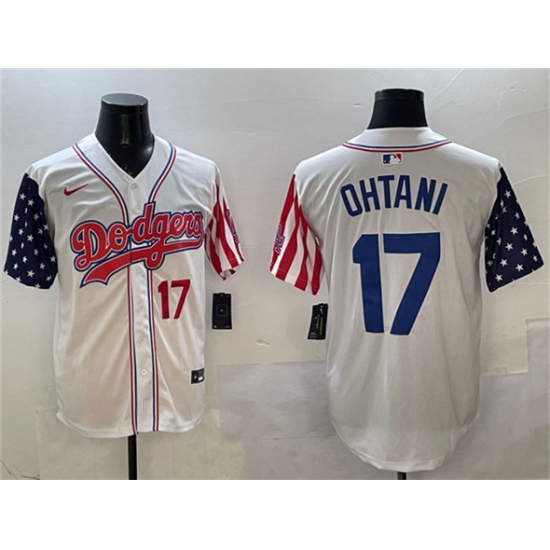 Men's Los Angeles Dodgers #17 Shohei Ohtani Royal With American Flag Limited Stitched Baseball Jersey