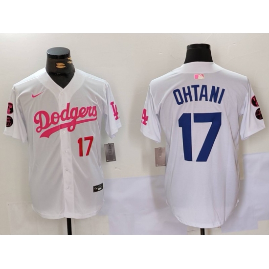 Men's Los Angeles Dodgers #17 Shohei Ohtani White Pink Vin & Kobe Stitched Baseball Jerseys