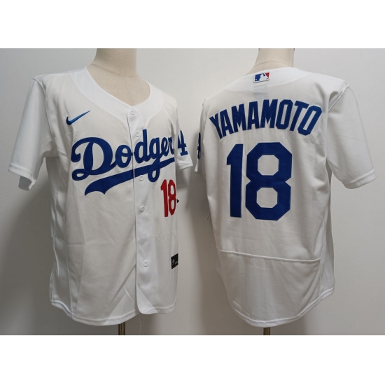 >Men's Los Angeles Dodgers #18 Yoshinobu Yamamoto Nike White Home FlexBase Player Jersey