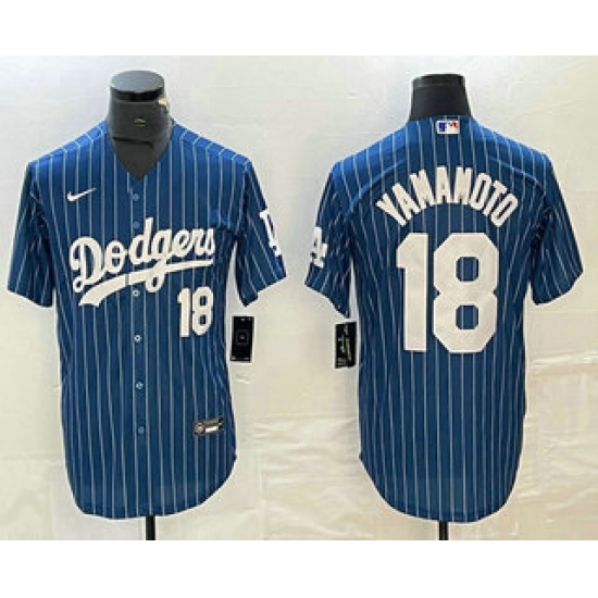 Men's Los Angeles Dodgers #18 Yoshinobu Yamamoto Number Blue Pinstripe Cool Base Stitched Baseball Jersey