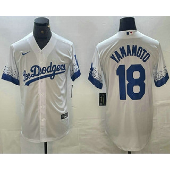 Men's Los Angeles Dodgers #18 Yoshinobu Yamamoto White 2021 City Connect Cool Base Stitched Jersey