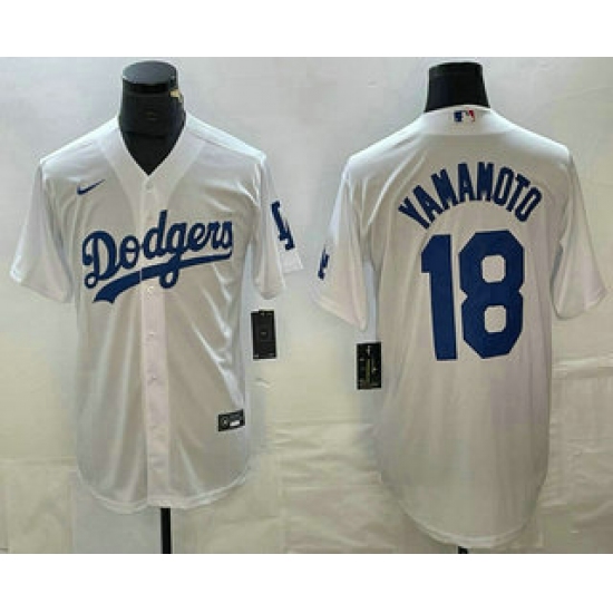 Men's Los Angeles Dodgers #18 Yoshinobu Yamamoto White Stitched Cool Base Nike Jersey
