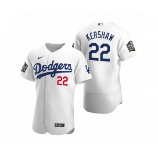 Men's Los Angeles Dodgers #22 Clayton Kershaw Nike White 2020 World Series Authentic Jersey