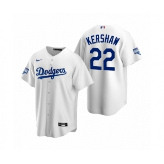 Men's Los Angeles Dodgers #22 Clayton Kershaw White 2020 World Series Champions Replica Jersey