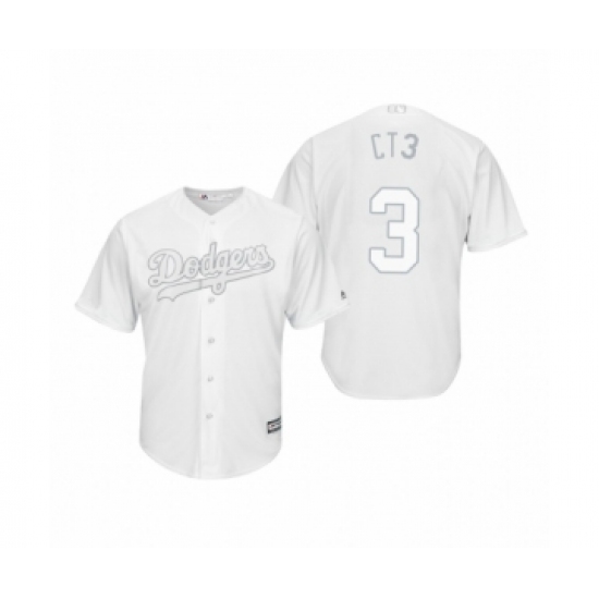 >Men's Los Angeles Dodgers #3 Chris Taylor CT3 White 2019 Players Weekend Replica Jersey