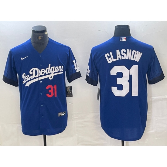 >Men's Los Angeles Dodgers #31 Tyler Glasnow Number Blue 2021 City Connect Cool Base Stitched Jersey