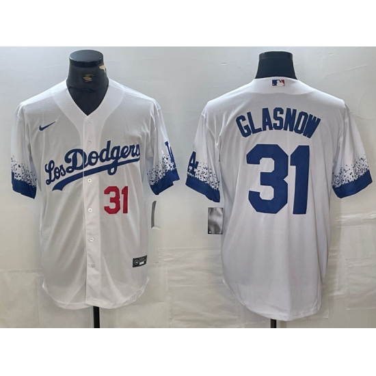 Men's Los Angeles Dodgers #31 Tyler Glasnow Number White 2021 City Connect Cool Base Stitched Jerseys
