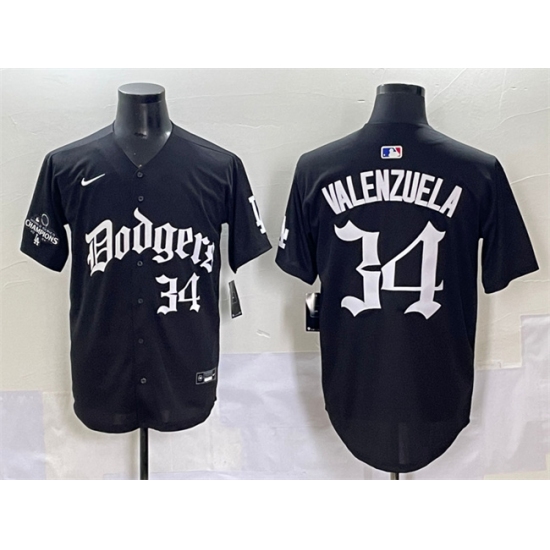 Men's Los Angeles Dodgers #34 Fernando Valenzuela Black 2025 LA Gothic Style With 2024 World Series Champions Vapor Premier Limited Stitched Baseball Jerse