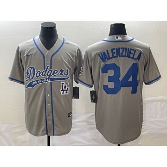 Men's Los Angeles Dodgers #34 Fernando Valenzuela Grey Cool Base Stitched Baseball Jersey