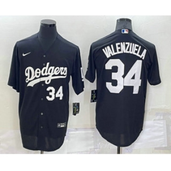 Men's Nike Los Angeles Dodgers #34 Fernando Valenzuela Black Elite Jersey