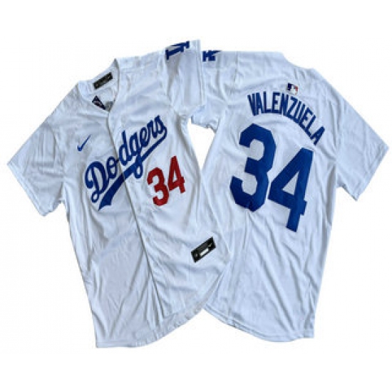 Men's Los Angeles Dodgers #34 Fernando Valenzuela Number White Limited Stitched Jersey