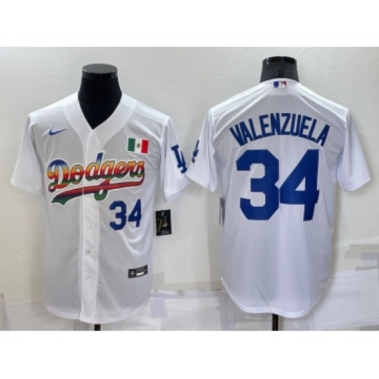 Men's Los Angeles Dodgers #34 Fernando Valenzuela Rainbow Blue White Mexico Cool Base Nike Jersey
