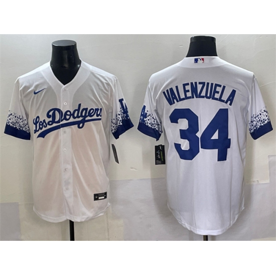 >Men's Los Angeles Dodgers #34 Fernando Valenzuela White City Connect Cool Base Stitched Jersey