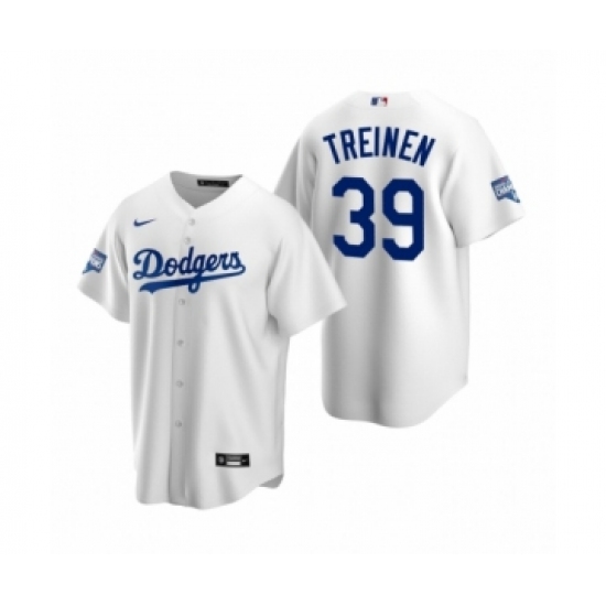 Men's Los Angeles Dodgers #39 Blake Treinen White 2020 World Series Champions Replica Jersey