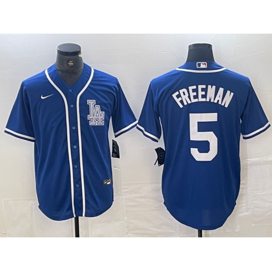 Men's Los Angeles Dodgers #5 Freddie Freeman Blue Cool Base Stitched Baseball Jersey