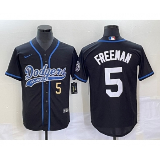 Men's Los Angeles Dodgers #5 Freddie Freeman Number Black Cool Base Stitched Baseball Jersey