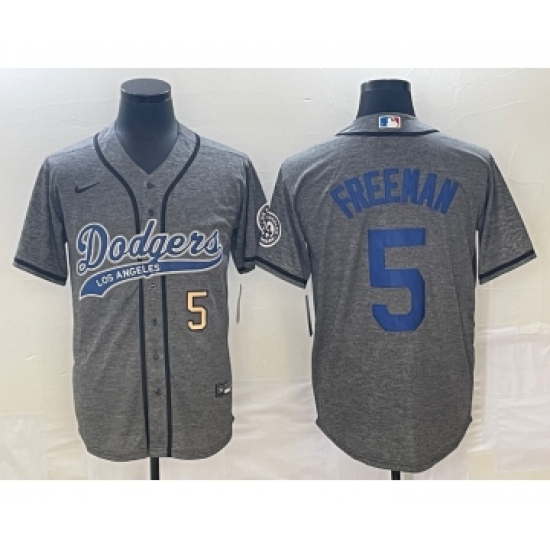 Men's Los Angeles Dodgers #5 Freddie Freeman Number Grey Gridiron Cool Base Stitched Baseball Jersey