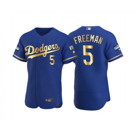 >Men's Los Angeles Dodgers #5 Freddie Freeman Royal Golden Flex Base Stitched Jersey