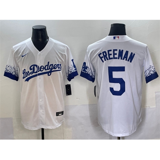 Men's Los Angeles Dodgers #5 Freddie Freeman White City Connect Cool Base Stitched Jersey