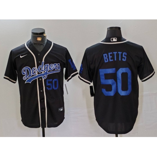 Men's Los Angeles Dodgers #50 Mookie Betts Number Black Cool Base With Stitched Baseball Jerseys