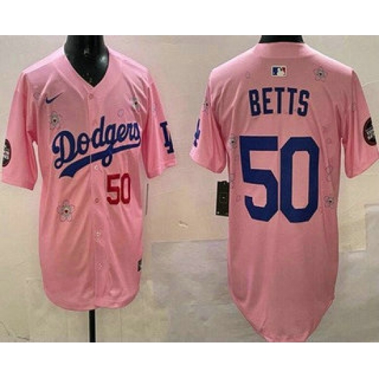Men's Los Angeles Dodgers #50 Mookie Betts Pink 2025 Tokyo Series Limited Jersey