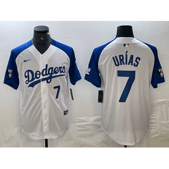 Men's Los Angeles Dodgers #7 Julio Urias Number White Blue Fashion Stitched Cool Base Limited Jerseys