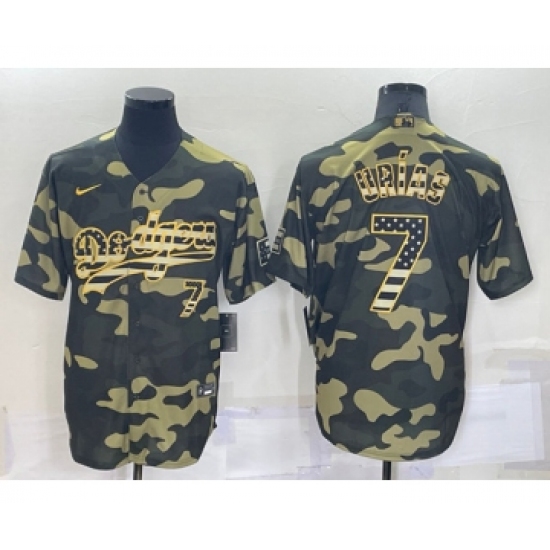 >Men's Los Angeles Dodgers #7 Julio Urias Olive Cool Base Stitched Baseball Jersey