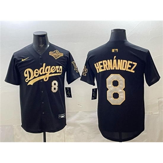 Men's Los Angeles Dodgers #8 Enrique Hernández Black Gold 2025 World Series Limited Stitched Baseball Jersey