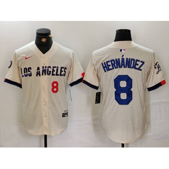 Men's Los Angeles Dodgers #8 Kike Hernandez Number Cream 2024 City Connect Limited Stitched Jerseys