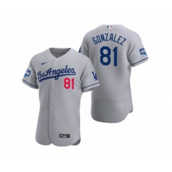 Men's Los Angeles Dodgers #81 Victor Gonzalez Gray 2020 World Series Champions Authentic Jerseys