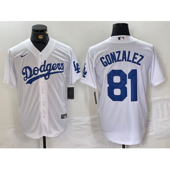 >Men's Los Angeles Dodgers #81 Victor Gonzalez White Cool Base Stitched Baseball Jersey