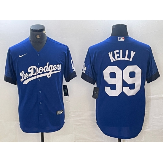 Men's Los Angeles Dodgers #99 Joe Kelly Blue 2021 City Connect Cool Base Stitched Jersey