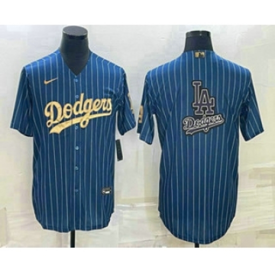 >Mens Los Angeles Dodgers Big Logo Navy Blue Pinstripe Stitched MLB Cool Base Nike Jerseys