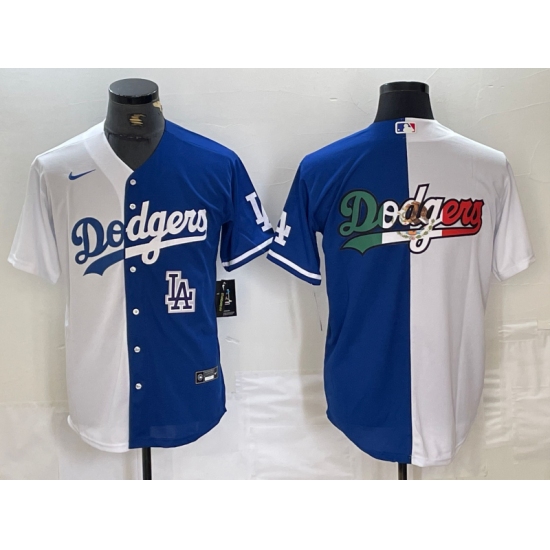 Men's Los Angeles Dodgers Big Logo White Blue Two Tone Stitched Baseball Jersey
