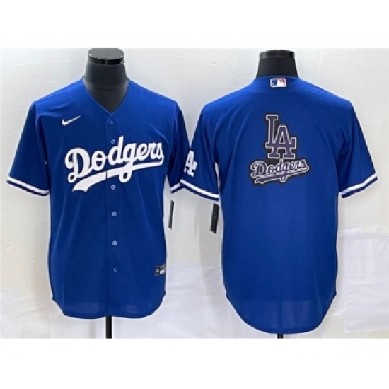 Men's Los Angeles Dodgers Blue Team Big Logo Cool Base Stitched Baseball Jersey 1