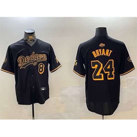 Men's Los Angeles Dodgers Front #8 Back #24 Kobe Bryant Black Gold Stitched Jersey