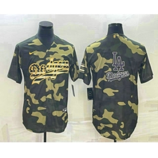 Men's Los Angeles Dodgers Olive Team Big Logo Cool Base Stitched Baseball Jersey