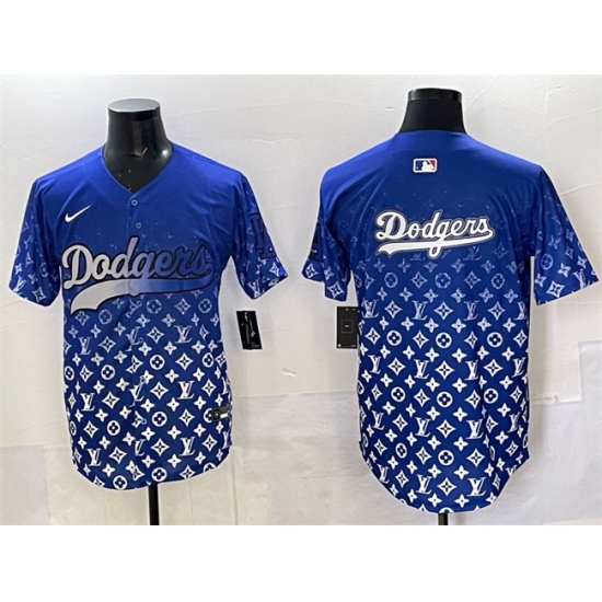 >Men's Los Angeles Dodgers Team Big Logo Blue Limited Stitched Baseball Jersey