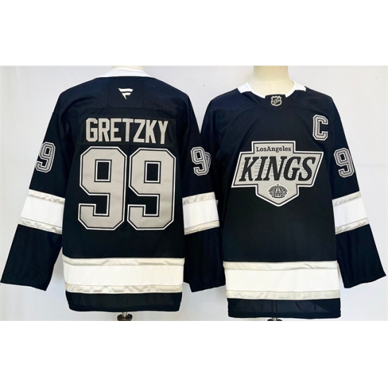 >Men's Los Angeles Kings #99 Wayne Gretzky Black 2024-25 Home With C Stitched Hockey Jersey