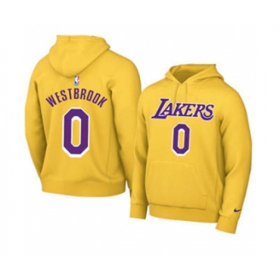 >Men's Los Angeles Lakers #0 Russell Westbrook 2021 Yellow Pullover Basketball Hoodie