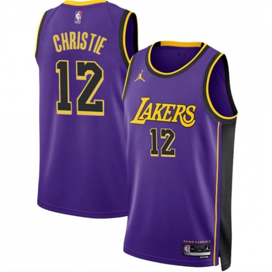 Men's Los Angeles Lakers #12 Max Christie Purple 2024 Statement Edition Stitched Basketball Jersey