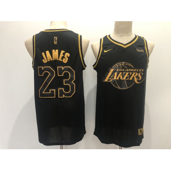 Men's Los Angeles Lakers #23 LeBron James Black Gold Swingman Basketball Jersey