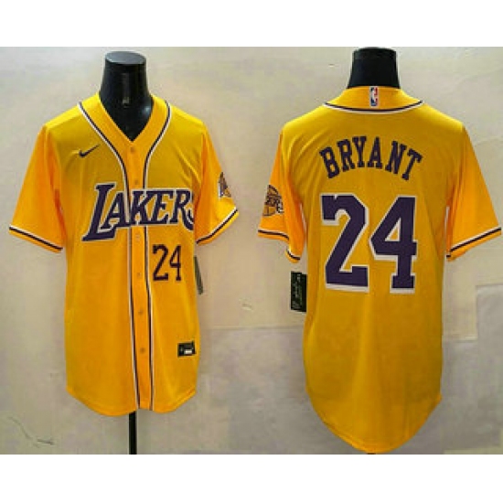 Men's Los Angeles Lakers Front #8 Back #24 Kobe Bryant Yellow Cool Base Stitched Baseball Jersey
