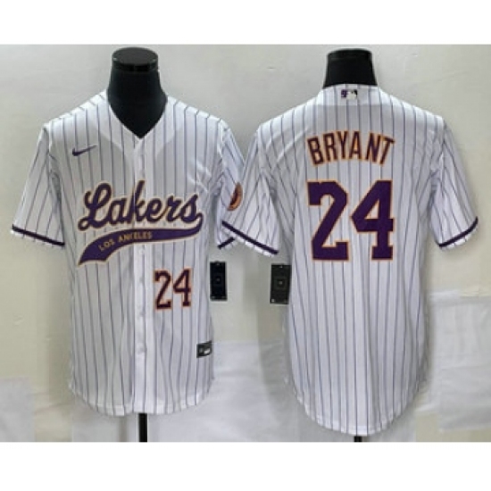 Men's Los Angeles Lakers #24 Kobe Bryant White Pinstripe Cool Base Stitched Baseball Jersey2